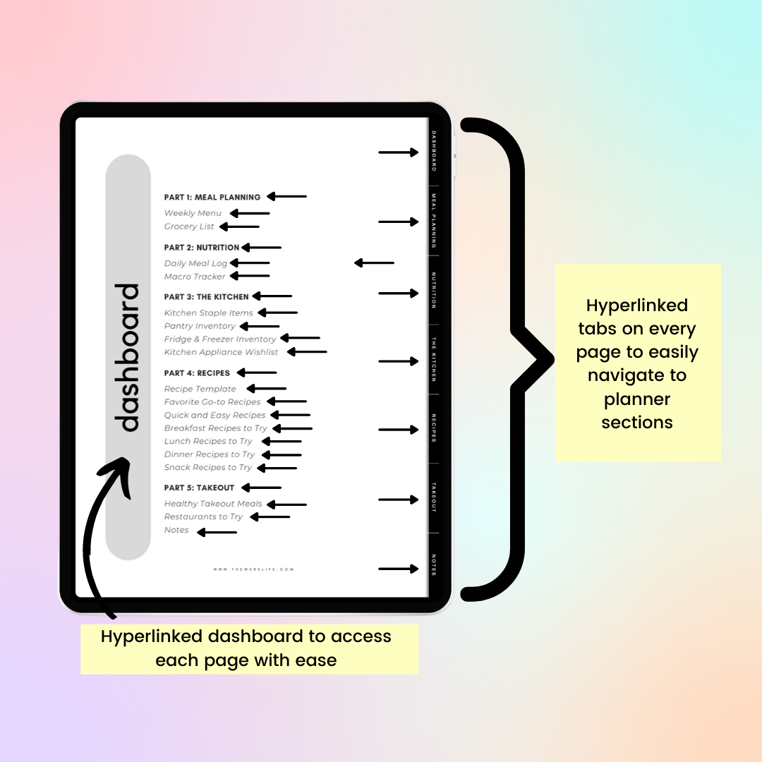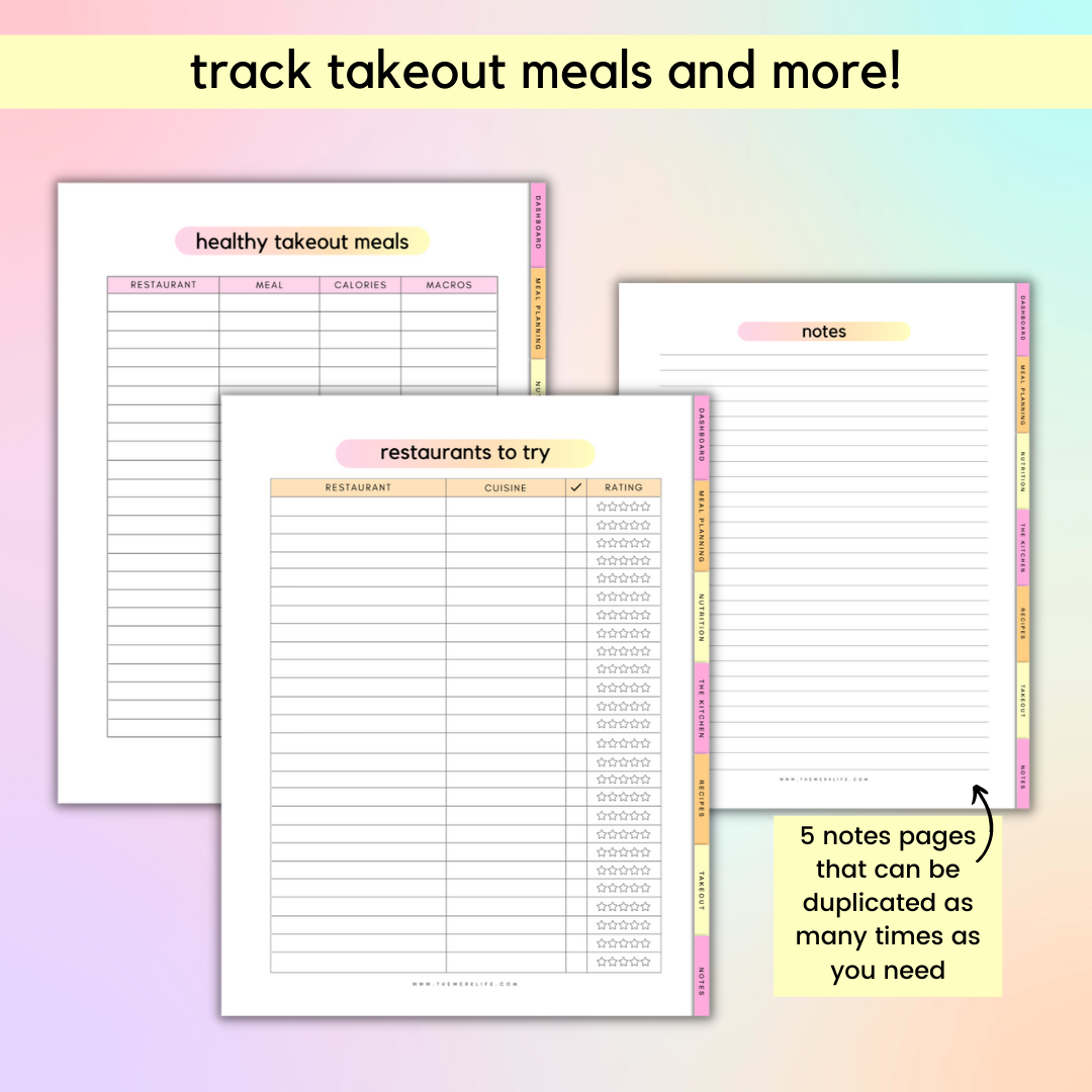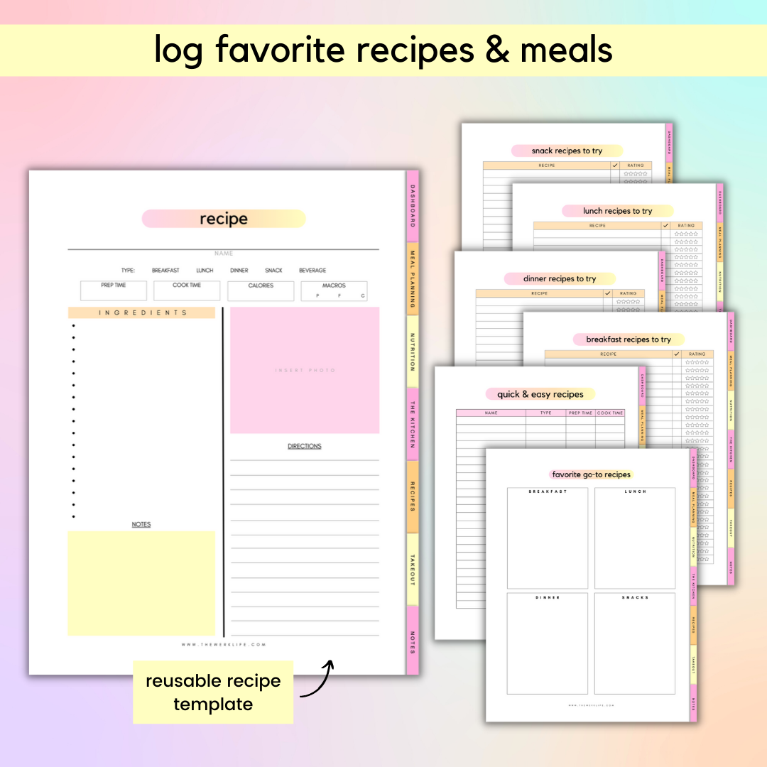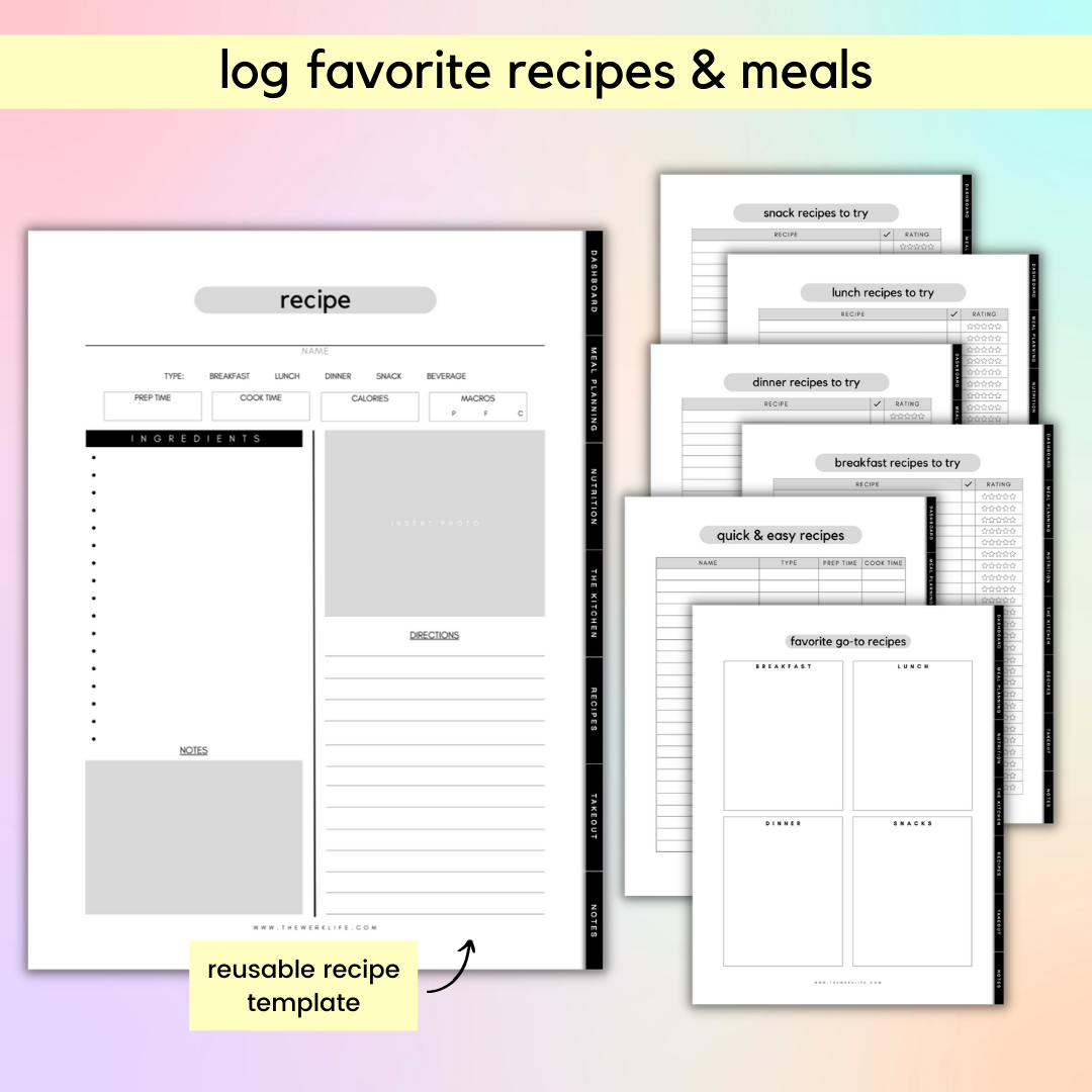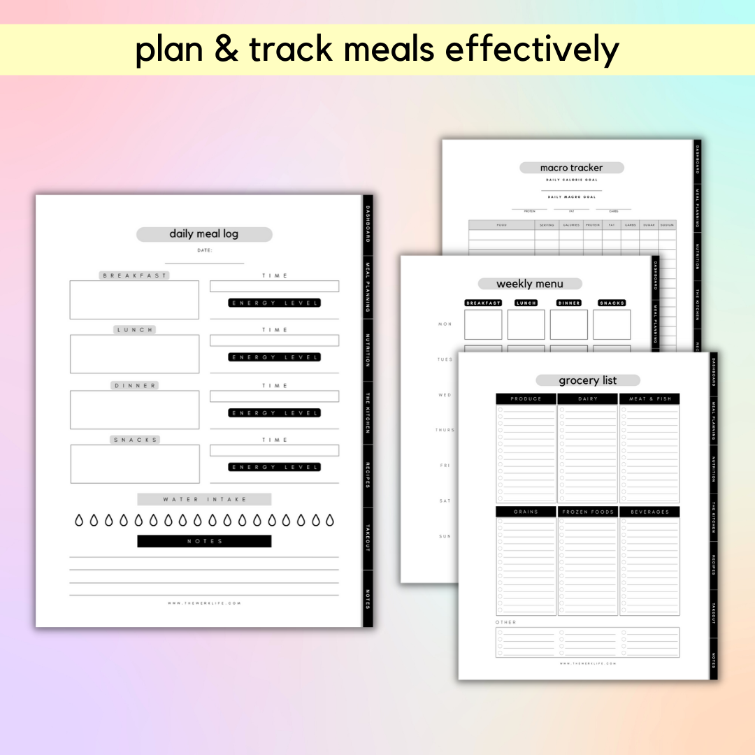 With over 10 unique templates, this digital planner will help you create a weekly meal prep menu, organize your grocery list, track your macros - and so much more. Organize your kitchen pantry, log your favorite recipes, and make a plan destined for success when it comes to your nutrition.